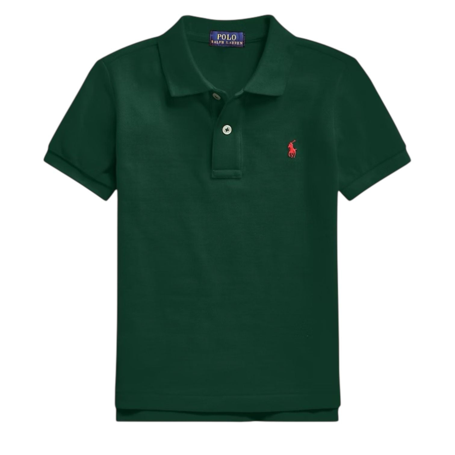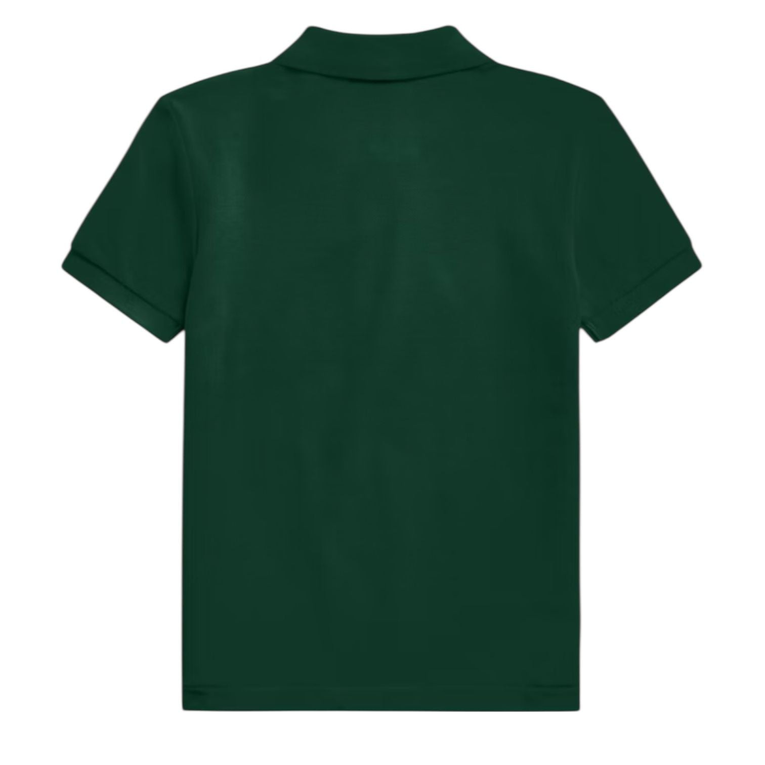 Blusa estilo polo en color verde, confeccionada con tejido suave y de alta calidad característico de Ralph Lauren. Su diseño combina elegancia clásica con conforto, ofreciendo una prenda versátil que se adapta tanto a looks casuales como a ocasiones más refinadas. El color verde agrega un toque moderno y distintivo al outfit infantil.