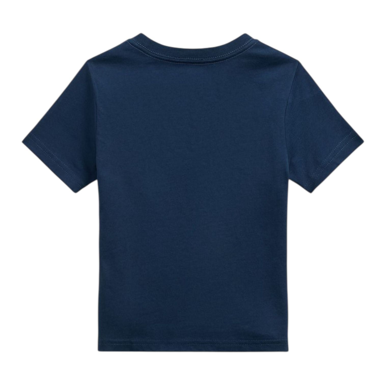 Camiseta infantil confeccionada en algodón suave y de alta calidad, con un diseño exclusivo que presenta el icónico oso Polo de Ralph Lauren celebrando con fuegos artificiales. Su color azul vibrante y el estampado detallado aportan un estilo moderno, divertido y elegante, ideal para destacar en cualquier ocasión. El tejido ligero garantiza conforto durante todo el día.