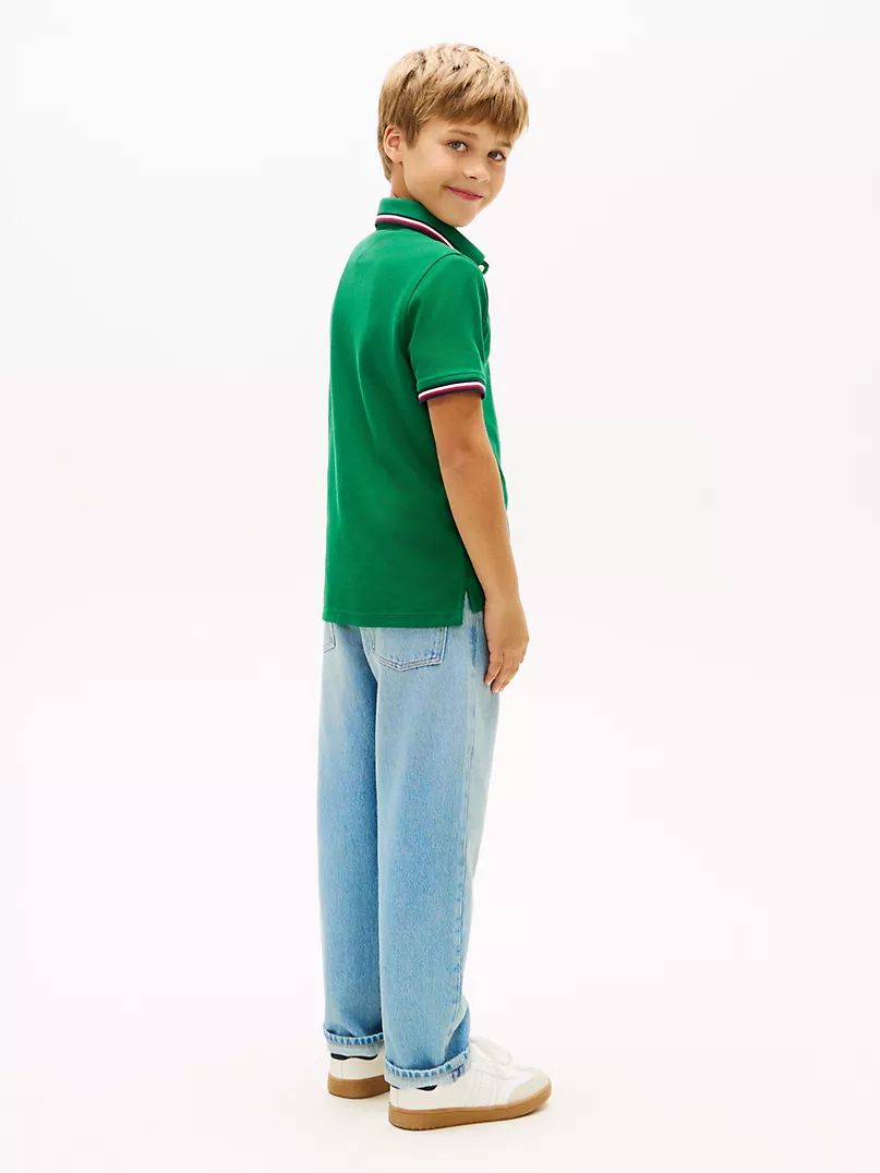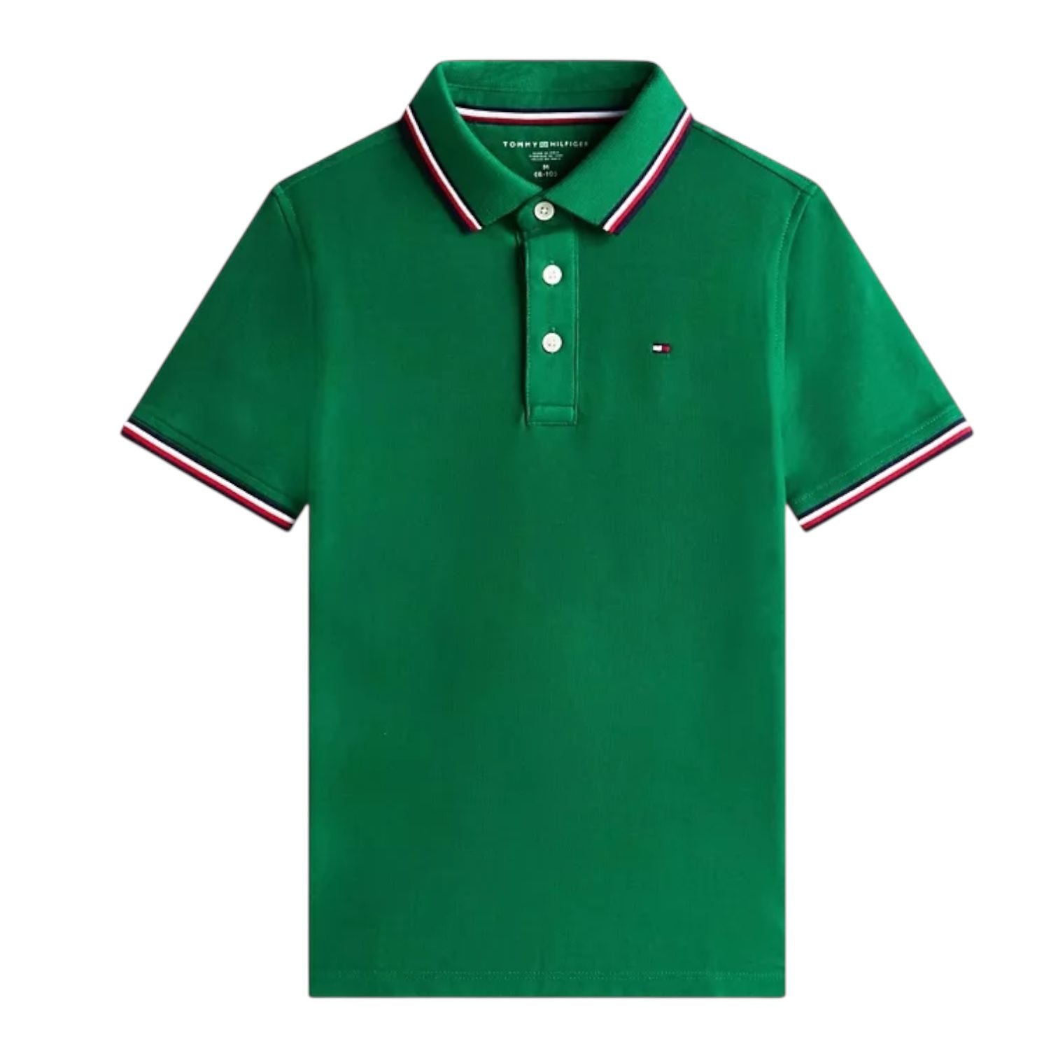 Camiseta infantil estilo polo confeccionada en algodón suave y de alta calidad, diseñada para ofrecer conforto y un look moderno con el estilo icónico de Tommy Hilfiger. Su color verde vibrante aporta frescura y personalidad, mientras el logo característico de la marca en el pecho añade un toque elegante y auténtico. Ideal para combinar con shorts, jeans o pantalones en cualquier ocasión.