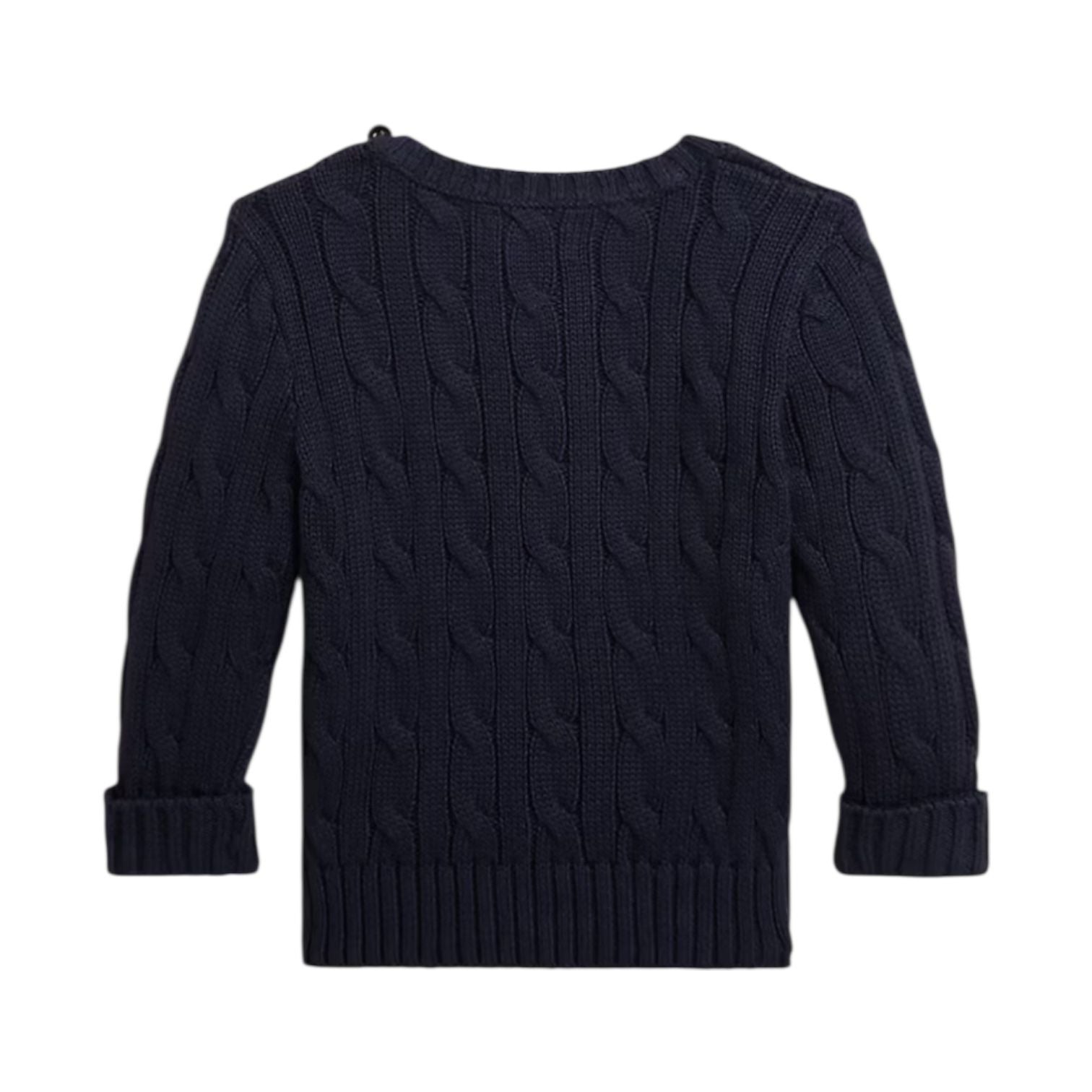 Sweater clásico confeccionado en punto trenzado de alta calidad, diseñado para mantener al bebé abrigado con estilo y comodidad. El tejido suave y cálido ofrece una sensación agradable durante todo el día, mientras el icónico logo bordado de Ralph Lauren en el pecho aporta un toque elegante y atemporal. Los botones en el hombro facilitan el vestir y desvestir, haciendo de esta prenda una opción práctica y refinada para días fríos.