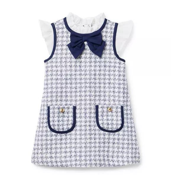 Vestido Infantil Tricot Branco/Azul Gola Laço Janie and Jack